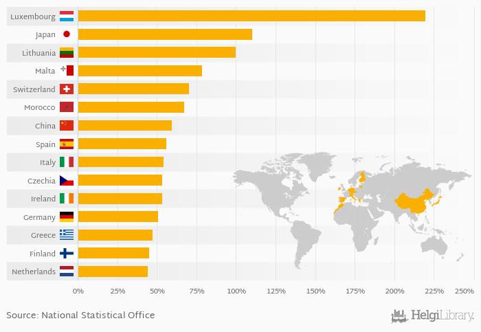 | Luxembourg | % | ... | ... | ... | ... | ... | ... | 185% | 198% | 236% | 220% | ... | ... | ... | ||||||||