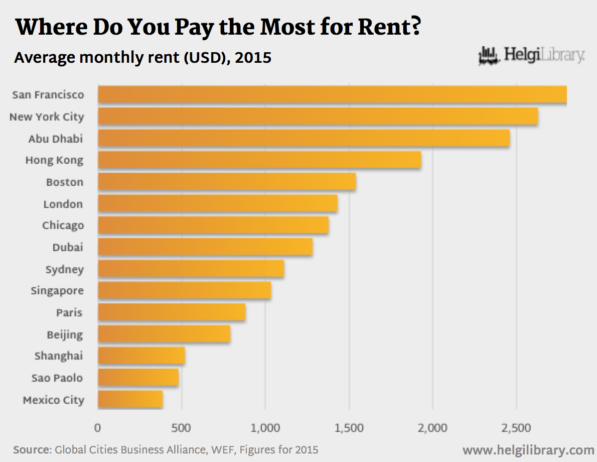This is based on a new report from the London-based Global Cities Business Alliance, which compared major business cities around the world to assess the scale of the housing crisis in each, looking at the average monthly rental cost and the average annual share of net earnings from 2015.