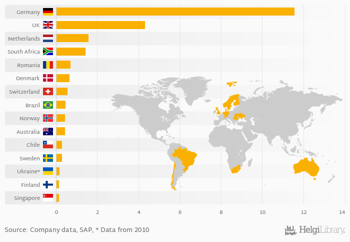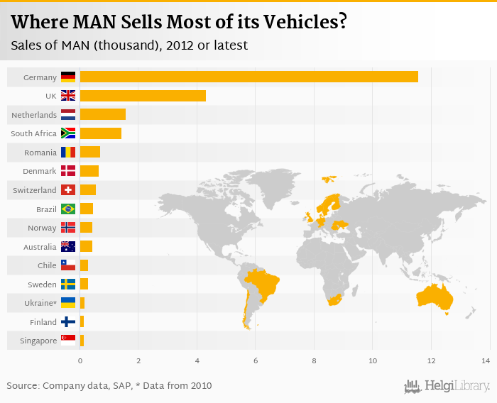 Based on a comparison of 18 countries in 2012, Germany ranked the highest in sales of MAN with 11.6 '000 followed by United Kingdom and Netherlands. On the other end of the scale was Mexico with 0.040 '000, Malaysia with 0.063 '000 and Ireland with 0.097 '000.
