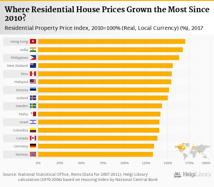 Data for more countries are available at Residential Property Price Index, 2010=100% (Real, Local Currency) indicator page.