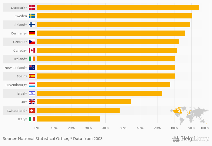 | Denmark | % | ... | ... | ... | ... | ... | ... | ... | ... | ... | ... | 93.1% | 93.4% | 93.8% | 92.8% | 94.0% | ... | |||||