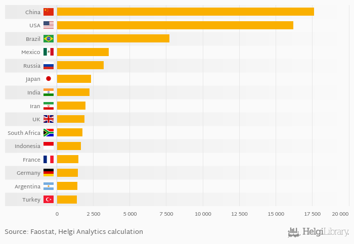 | China | kt | 15,612 | 16,650 | 17,161 | 17,542 | 17,495 | ||||||||||||||||