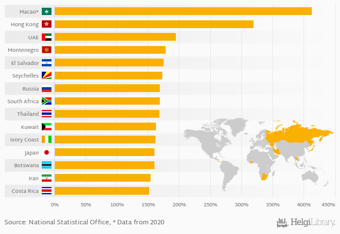 | Macao | % | 317% | 331% | 416% | 237% | 184% | ||||||||||||||||