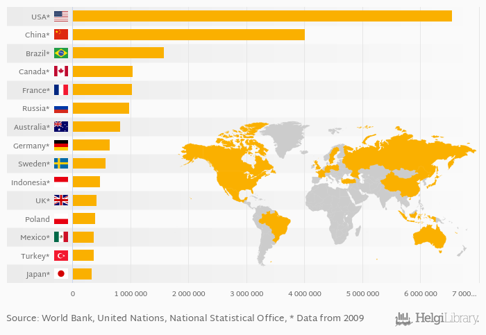 | Canada | km | ... | ... | ... | ... | ... | ... | ... | ... | 1,409,000 | 1,409,000 | 1,409,000 | 1,042,300 | ... | ||||||||