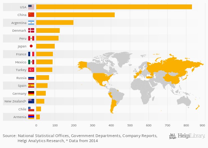 | USA | kt | 575 | 595 | 813 | 735 | 782 |