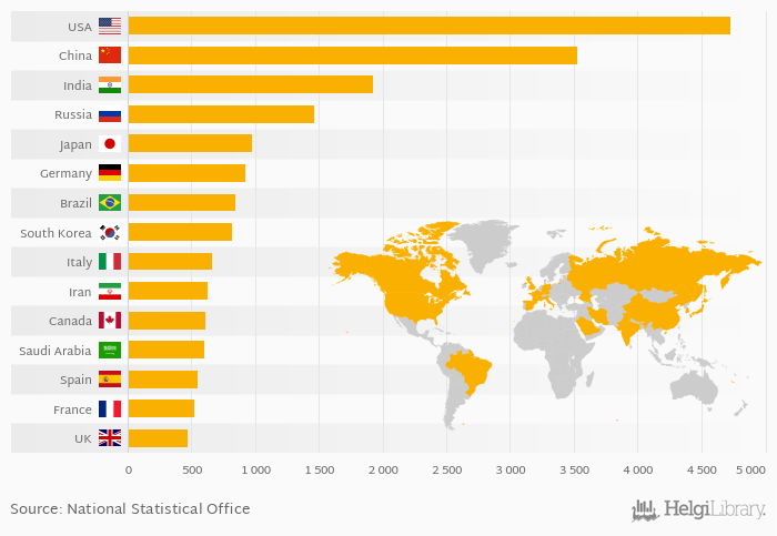 The top ranked country, USA, accounted for 17.6 % of distillate fuel oil production in the world. The top 3 countries hold a 37.9 % share while the ten largest countries some 61.5 % in 2014.