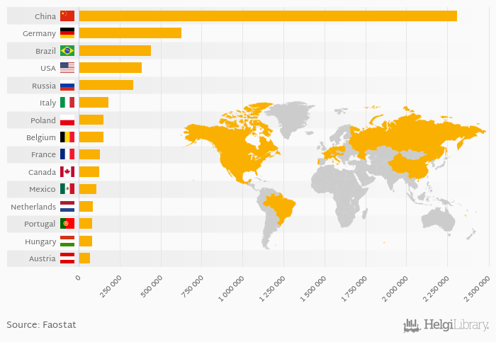 | China | tonnes | 1,965,119 | 2,027,555 | 2,150,988 | 2,152,302 | 2,254,870 | ||||||||||||||||