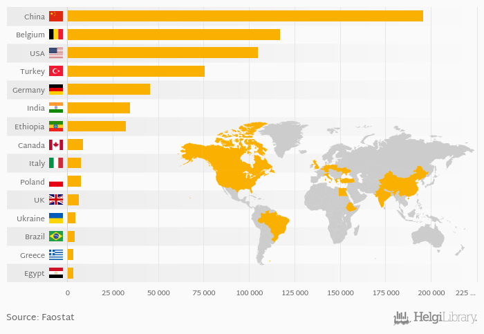 | China | tonnes | 99,100 | 134,000 | 144,800 | 127,400 | 147,000 | ||||||||||||||||