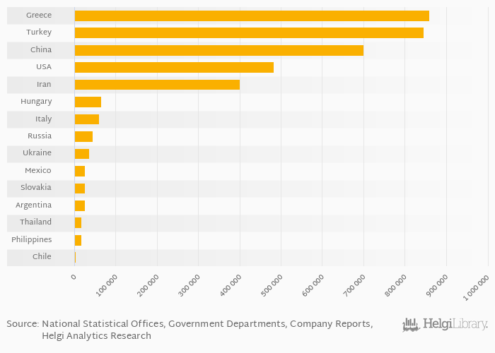 | Greece | tonnes | 862,935 | 790,000 | 800,000 | 876,000 | 890,000 | ||||||||||||||||