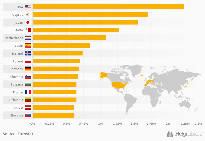 | Slovenia | % | ... | ... | ... | ... | ... | ... | ... | ... | ... | ... | 0.780% | 0.760% | 0.720% | 0.630% | 0.680% | ||||||