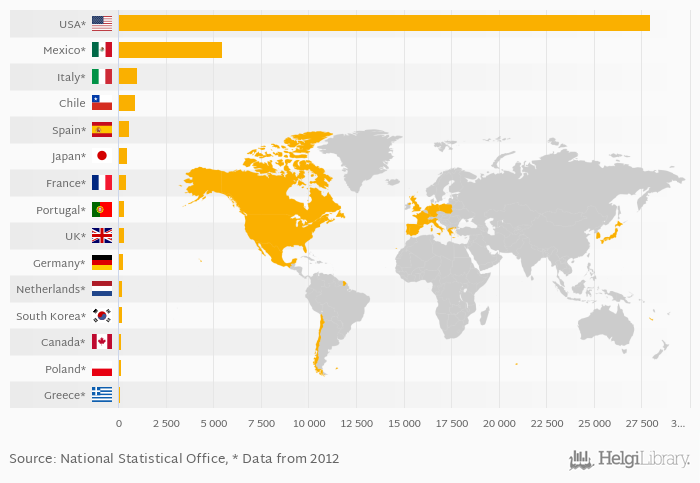 | Mexico | 7,403 | 6,987 | 7,122 | 6,028 | 5,916 | ... | ||||||||||||||||