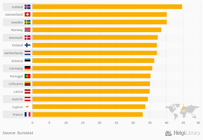 | Iceland | years | ... | ... | ... | ... | ... | 42.2 | 42.7 | 42.4 | 42.9 | 43.8 | |||||||||||