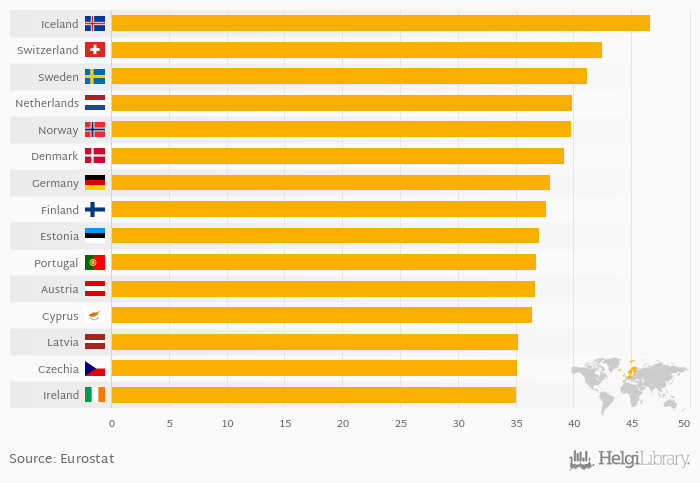 | Iceland | years | ... | ... | ... | ... | ... | 44.3 | 44.6 | 44.4 | 44.4 | 45.5 | |||||||||||