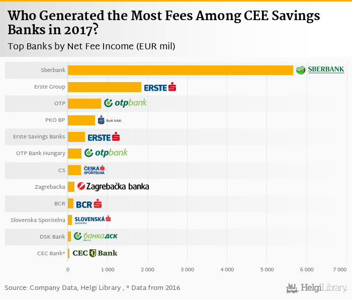 Based on a comparison of 12 banks among CEE Savings Banks in 2017, Sberbank generated the largest fee income, followed by Erste Group Bank and OTP Group.