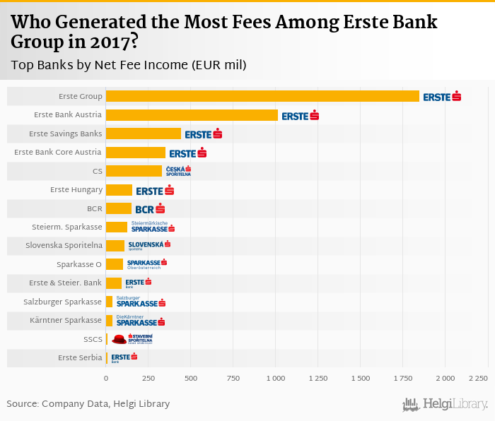 Based on a comparison of 15 banks among Erste Bank Group in 2017, Erste Group Bank generated the largest fee income, followed by Erste Bank Austria and Erste Savings Banks.
