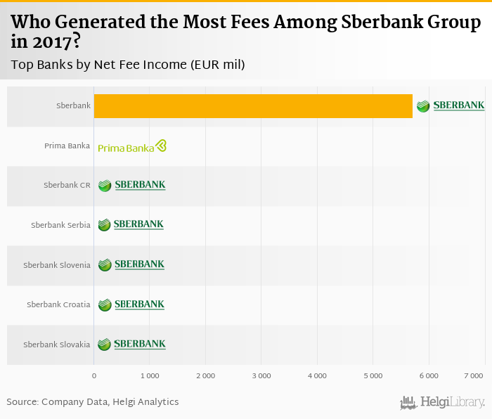 Based on a comparison of 7 banks among Sberbank Group in 2017, Sberbank generated the largest fee income, followed by Prima Banka Slovakia and Sberbank Czech Republic.