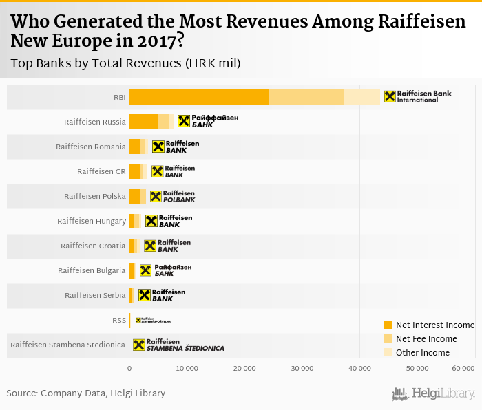 Based on a comparison of 11 banks among Raiffeisen New Europe in 2017, Raiffeisen Bank Int. generated the largest revenues, followed by Raiffeisenbank Russia and Raiffeisen Bank Romania.