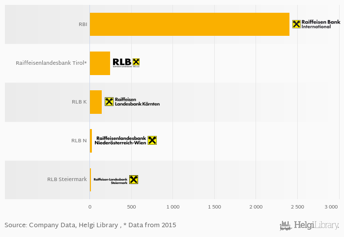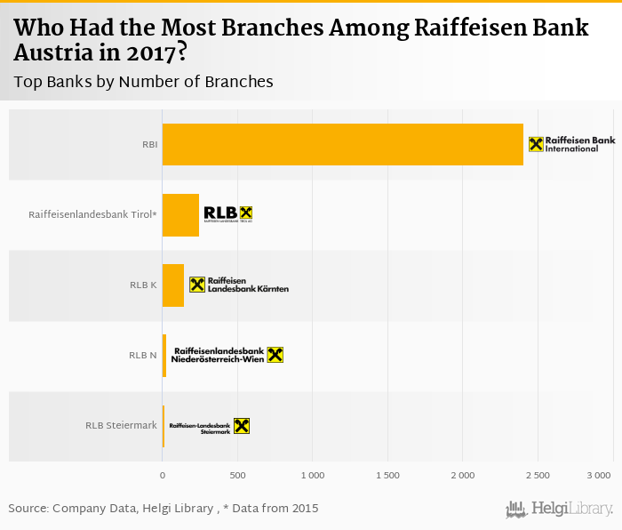 Comparing Raiffeisen Bank Int. with its closest peers, Raiffeisenlandesbank Tirol operated a network of 246 branches in 2017, Raiffeisenlandesbank Karnten had 147 branches and Raiffeisenlandesbank Niederosterreich-Wien had a network of 31.0 branches in 2017.