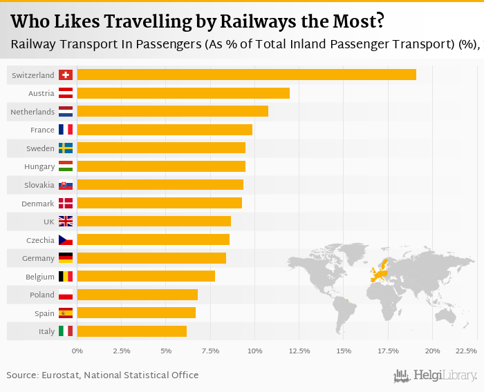 Data for more countries are available at Railway Transport In Passengers (As % of Total Inland Passenger Transport) indicator page.