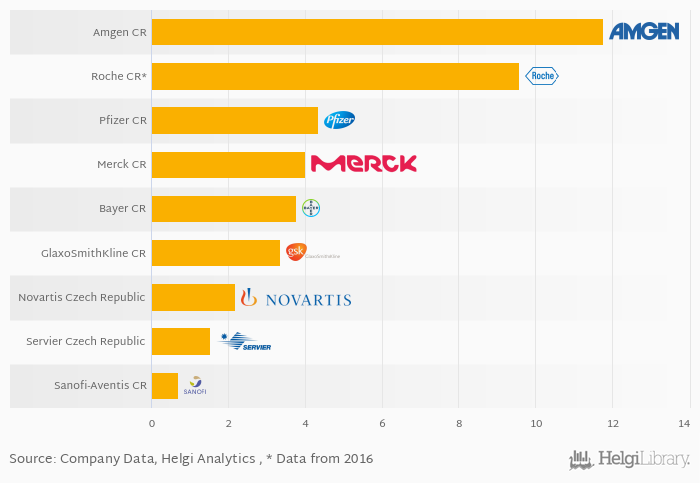 Comparing Amgen Czech Republic with its closest peers, Roche Czech Republic generated EBITDA of CZK 475 mil with a EBITDA margin of 9.57% in 2017, Pfizer Czech Republic grossed CZK 156 mil (EBITDA margin of 4.36%) and Merck Czech Republic announced a profit of CZK 72.8 mil translating into a margin of 4.00%.