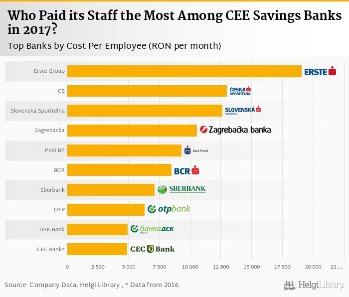 Based on a comparison of 10 banks among CEE Savings Banks in 2017, Erste Group Bank was paying its employees the best, followed by Ceska Sporitelna and Slovenska Sporitelna.