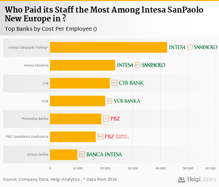 Based on a comparison of 7 banks among Intesa SanPaolo New Europe in 2017, Intesa Sanpaolo Turkey was paying its employees the best, followed by Intesa Sanpaolo Bank Slovenia and CIB Bank.