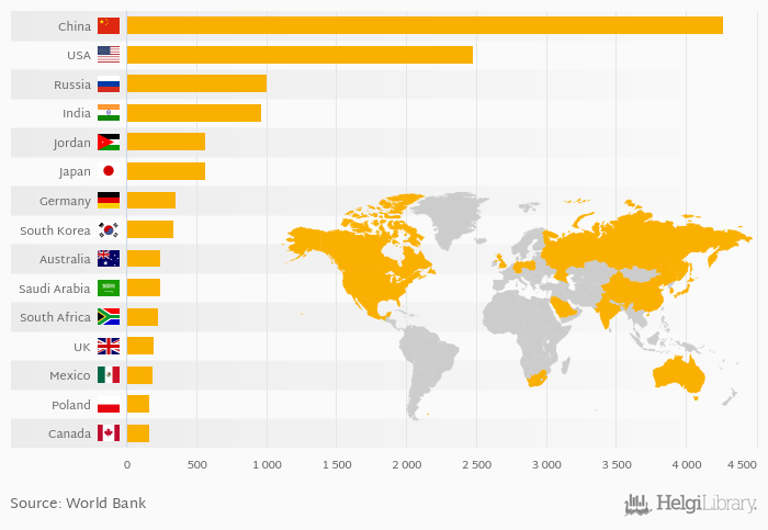 | China | Mt | 2,670 | 3,001 | 3,294 | 3,369 | 3,555 | ||||||||||||||||