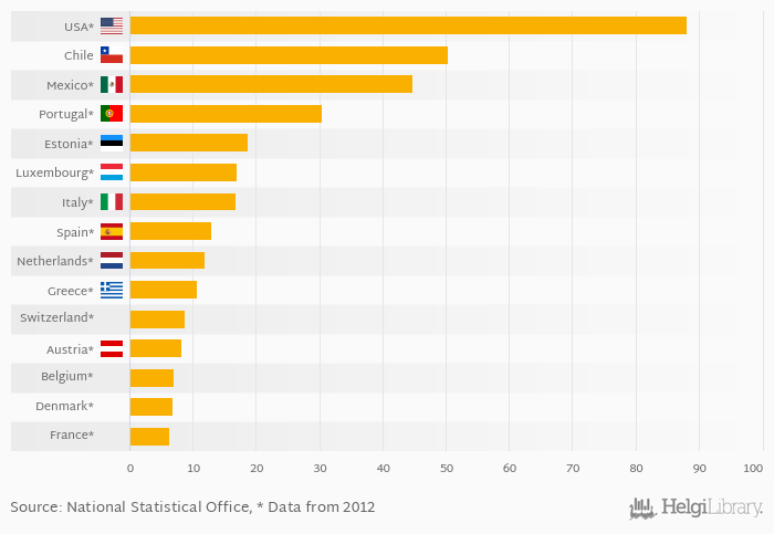 | France | 16.9 | 15.1 | 15.3 | 13.1 | 12.3 | ... | ||||||||||||||||