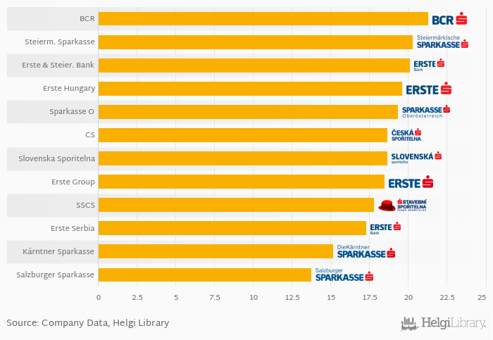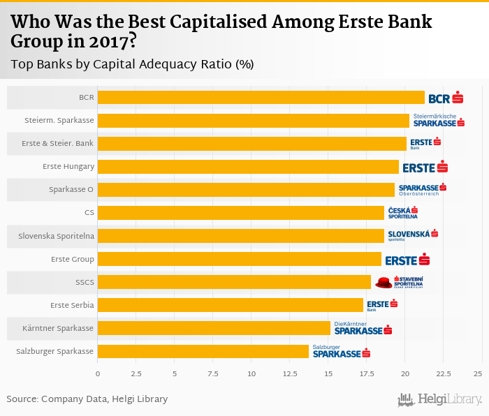 Based on a comparison of 12 banks among Erste Bank Group in 2017, Banca Commerciala Romana was the best capitalised bank, followed by Steiermarkische Sparkasse and Erste & Steiermarkische Bank.