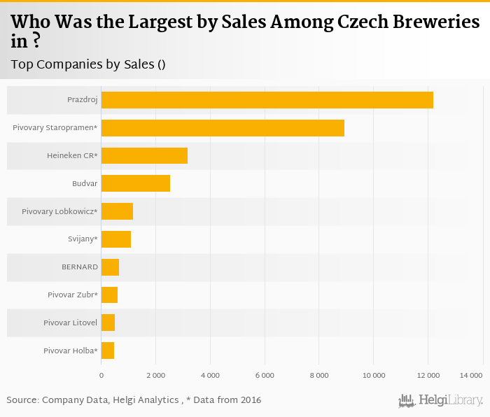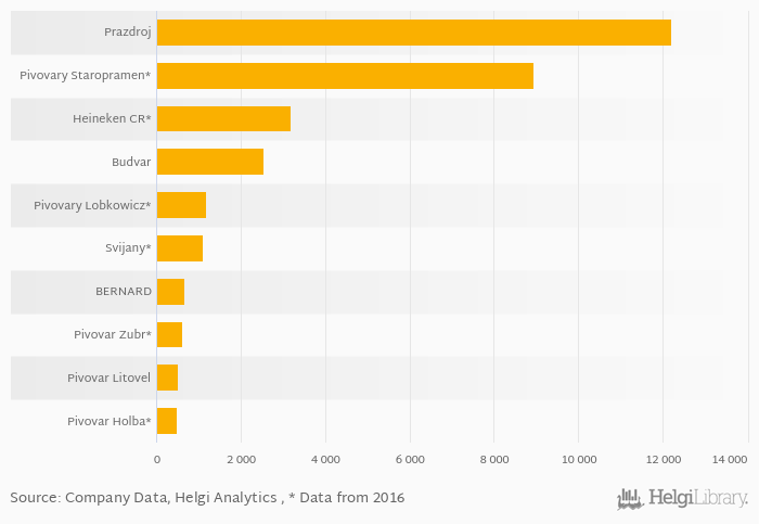 Based on a comparison of 10 firms among Czech Breweries, Plzensky Prazdroj generated the highest sales in 2017 followed by Pivovary Staropramen and Heineken Czech Republic.