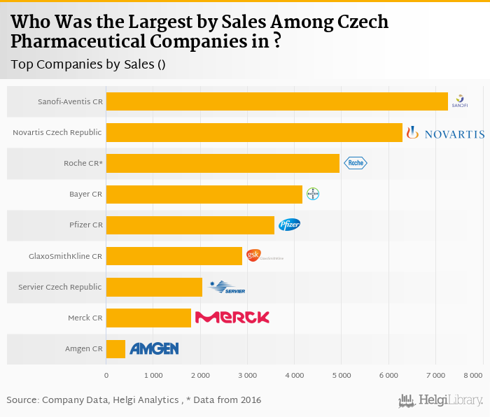Based on a comparison of 9 firms among Czech Pharmaceutical Companies, Sanofi-Aventis Czech Republic generated the highest sales in 2017 followed by Novartis Czech Republic and Roche Czech Republic.