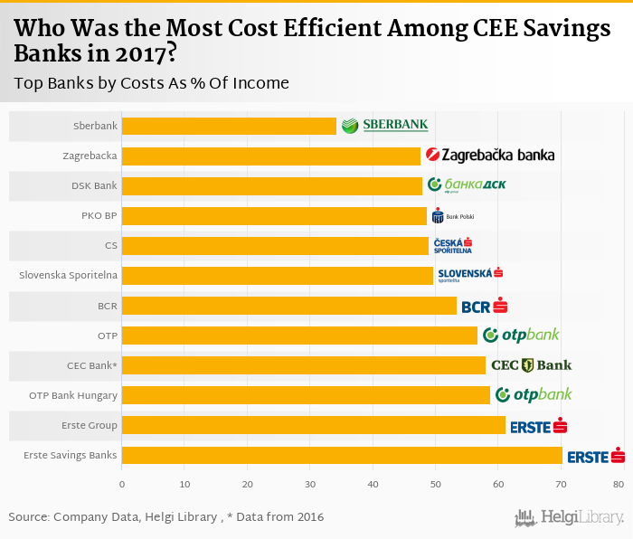 Based on a comparison of 12 banks among CEE Savings Banks in 2017, Sberbank was the most cost efficient bank, followed by Zagrebacka Banka and DSK Bank.