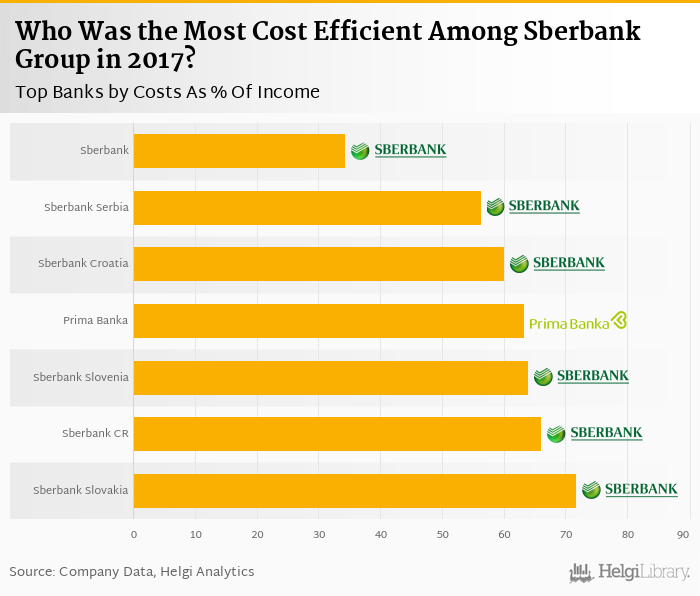 Based on a comparison of 7 banks among Sberbank Group in 2017, Sberbank was the most cost efficient bank, followed by Sberbank Serbia and Sberbank Croatia.