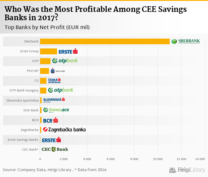 Based on a comparison of 12 banks among CEE Savings Banks, Sberbank produced the highest net profit in 2017, followed by Erste Group Bank and OTP Group.