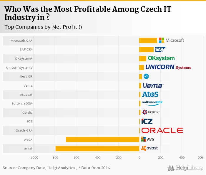 Based on a comparison of 14 firms among Czech IT Industry, Microsoft Czech Republic generated the highest net profit in 2017 followed by SAP Czech Republic and OKsystem.