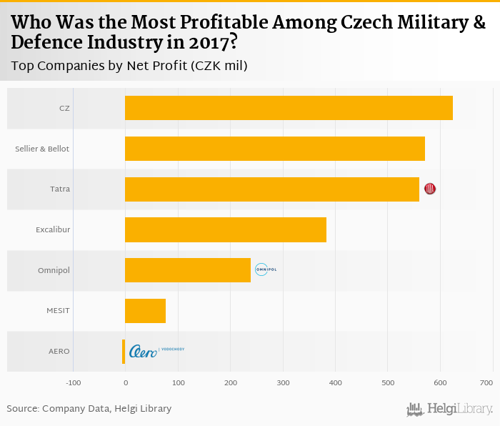 Based on a comparison of 7 firms among Czech Military & Defence Industry, Ceska zbrojovka generated the highest net profit in 2017 followed by Sellier & Bellot and Tatra Trucks.