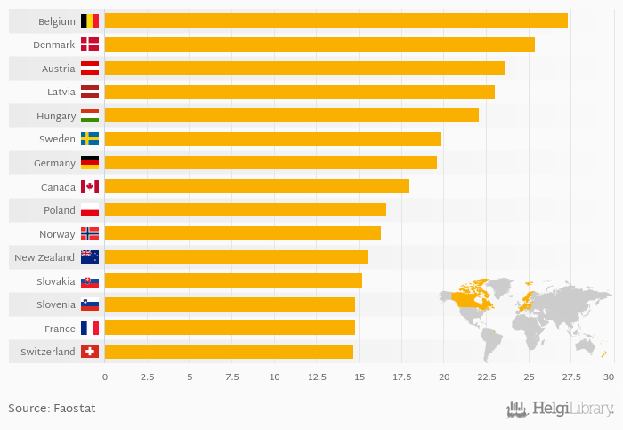 | Belgium | kg | ... | ... | ... | ... | ... | ... | ... | 28.8 | 26.6 | 27.0 | 26.1 | 28.6 | |||||||||