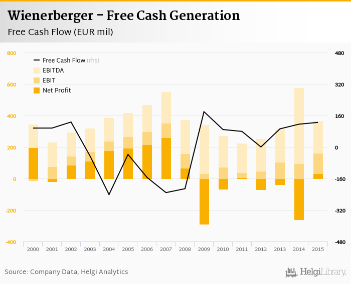 Wienerberger made a net profit of EUR 32.5 mil with revenues of EUR 2,972 mil in 2015, up by 112% and up by 4.87%, respectively, compared to the previous year. This translates into a net margin of 1.09%.