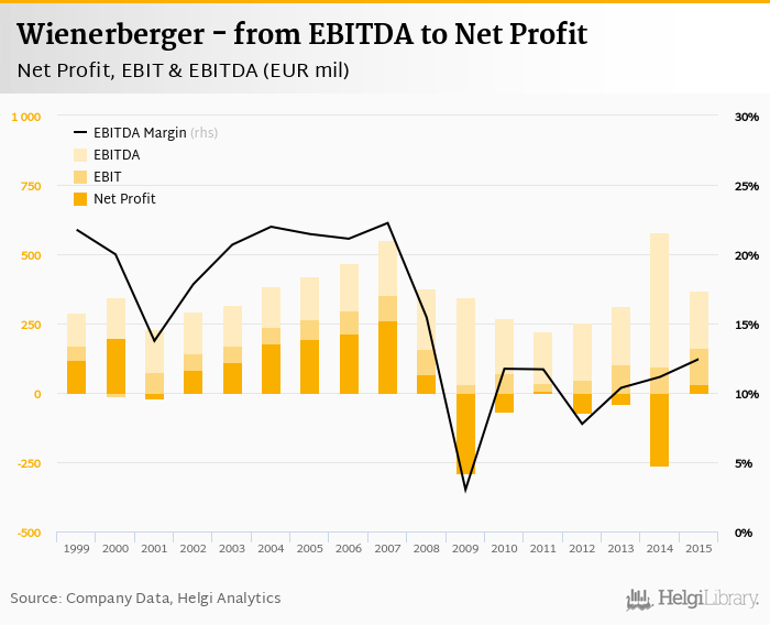 Wienerberger made a net profit of EUR 32.5 mil with revenues of EUR 2,972 mil in 2015, up by 112% and up by 4.87%, respectively, compared to the previous year. This translates into a net margin of 1.09%.