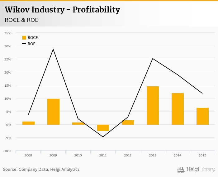 Wikov Industry made a net profit of CZK 73.1 mil in 2015, down 55.9% compared to the previous year. Historically, between 2005 and 2015, the company's net profit reached a high of CZK 178 mil in 2013 and a low of CZK -81.0 mil in 2005.