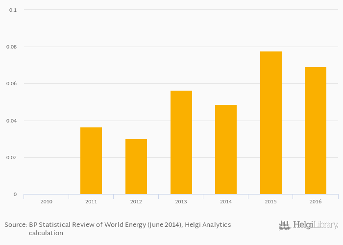 Historically, wind capacity as a share of worldwide wind turbine capacity in Ethiopia reached an all time high of 0.078% in 2015 and an all time low of 0% in 2010.