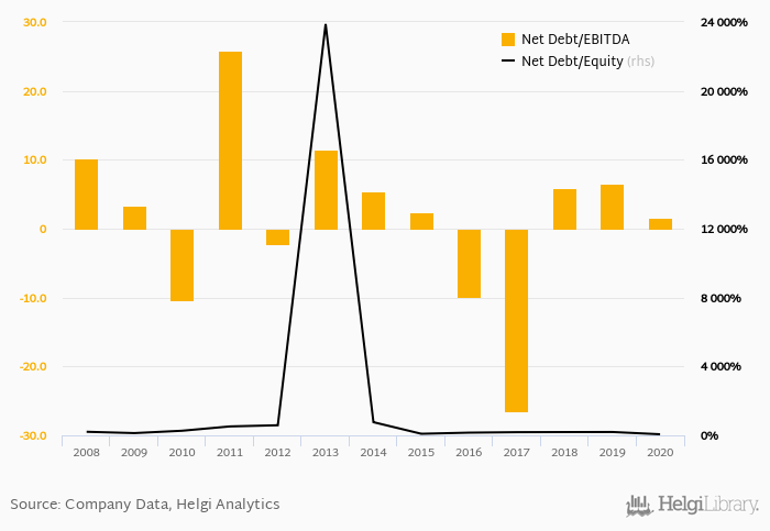 Historically, the firm’s net debt to equity reached a high of 23,879% in 2013 and a low of 62.3% in 2020 between 2007 and 2020. The average for the last five years was 158%.