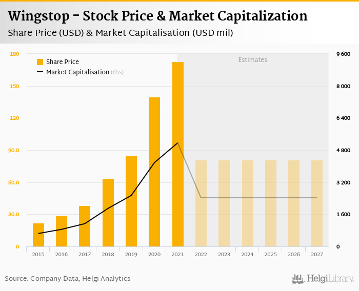 Wingstop stock traded at USD 173 per share at the end 2021 implying a market capitalization of USD 5,161 mil.