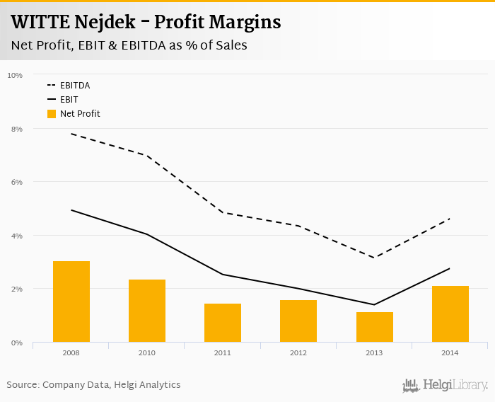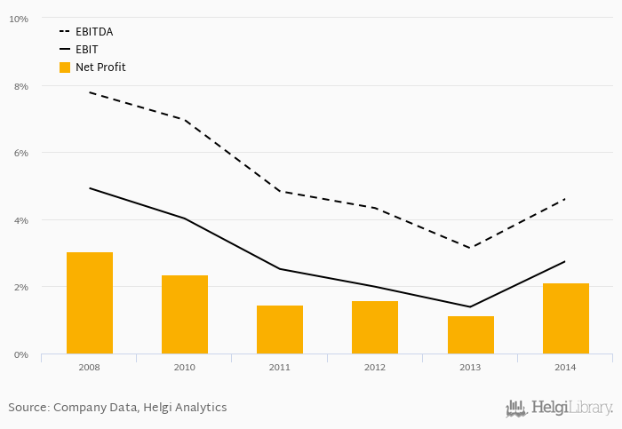 On the operating level, the EBITDA margin reached 4.60% and EBIT amounted to 2.75% of sales in 2014.