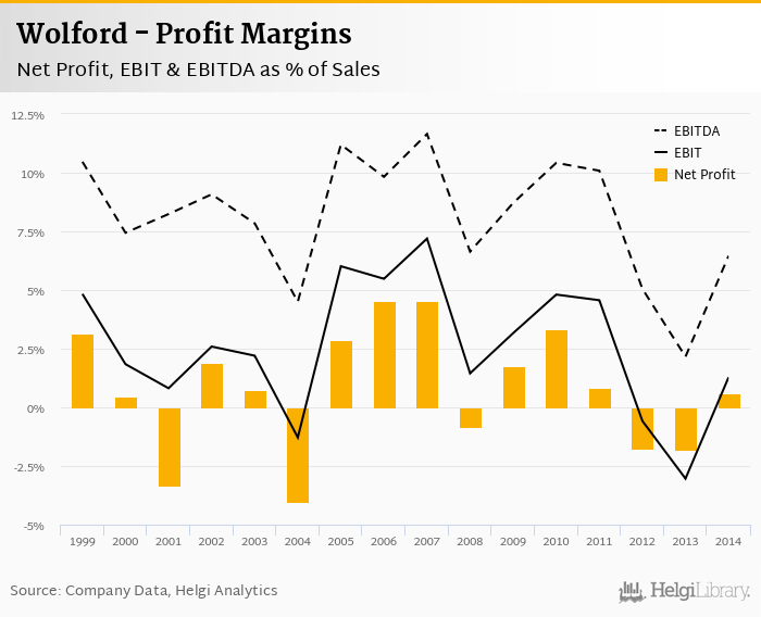 Wolford made a net profit of EUR 1.03 mil with revenues of EUR 169 mil in 2014, up by 137% and up by 9.04%, respectively, compared to the previous year.