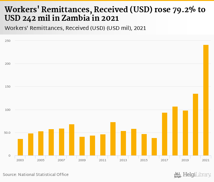 Zambia has been ranked 132nd within the group of 161 countries we follow in terms of workers' remittances received, 10 places above the position seen 10 years ago.