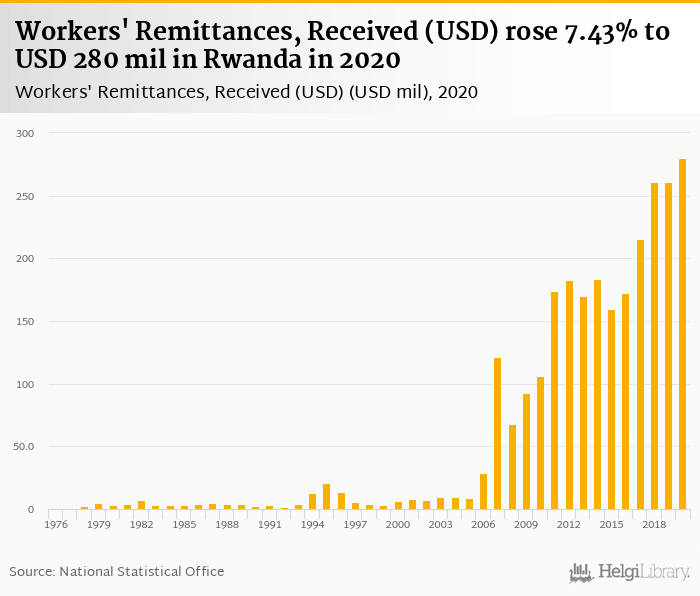 Rwanda has been ranked 112th within the group of 161 countries we follow in terms of workers' remittances received, 14 places above the position seen 10 years ago.