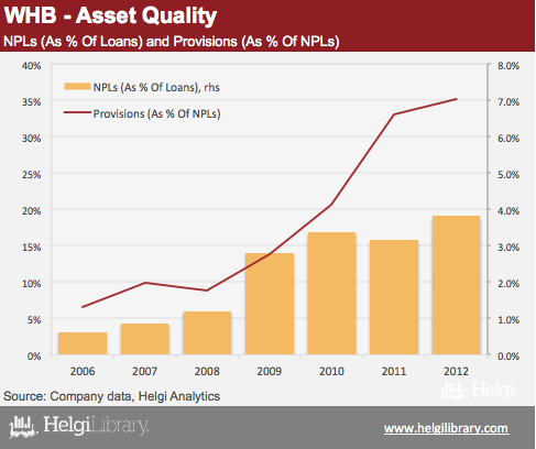 At the end of 2012, non-performing loans reached CZK 718 mil, or 6.2% of total loans. Provisions covered 55% of the NPLs