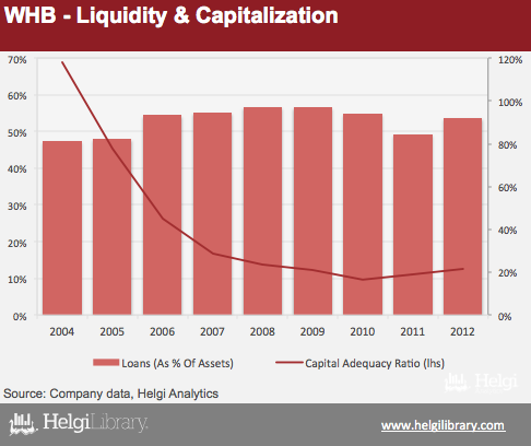 Wüstenrot has been growing more than twice as fast as the overall market over the last five years to compensate for its late arrival in the mortgage business a decade ago. Still, the bank has enough capital to grow further with capital adequacy at 12.6% at the end of 2012