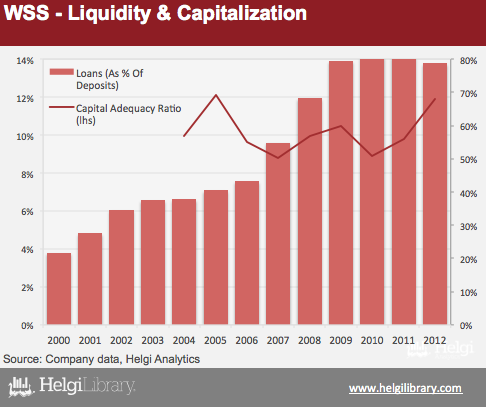 The bank has utilized its funding base pretty fast,. In between 2005-2010, loans increased from 40% to nearly 90% of clients deposits. Lower demand and increased competition from mortgage lending seem to slow that growth